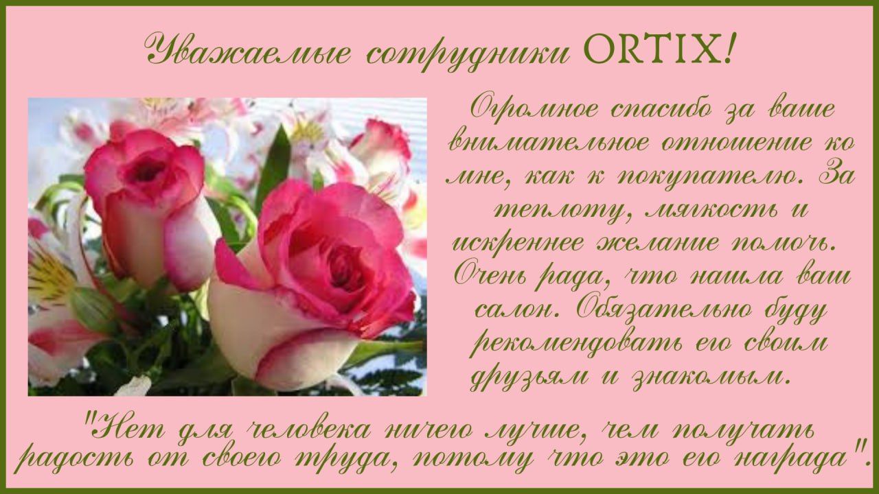 Доброго времени суток! Благодарю сотрудников салона за помощь в подборе летней обуви для проблемных ног. Приятно видеть такой большой ассортимент товаров, в том числе обуви. Также я для себя отметила удобство и хорошее качество. Желаю вам здоровья успехов и развития!
